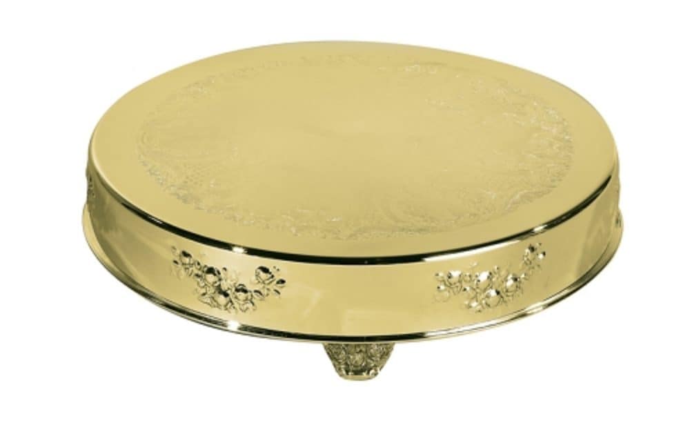 Mirrored Gold Cake Stand W/Floral Accent, 18″ Round